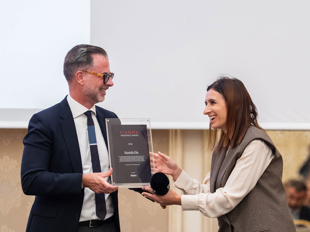A special highlight of the evening was the presentation of the Fiamma Fragrance Award to Mariella Elia, Managing Director of Rinascente, honored by Peter Gladel of Interparfums Italia for her innovative leadership and her ability to relaunch the brand.
