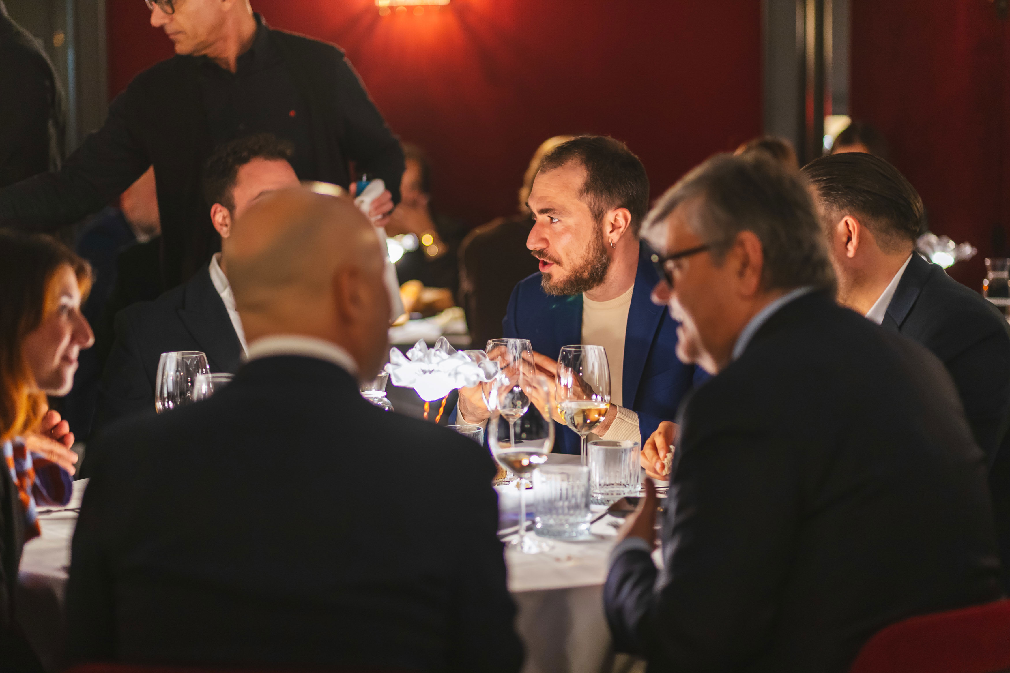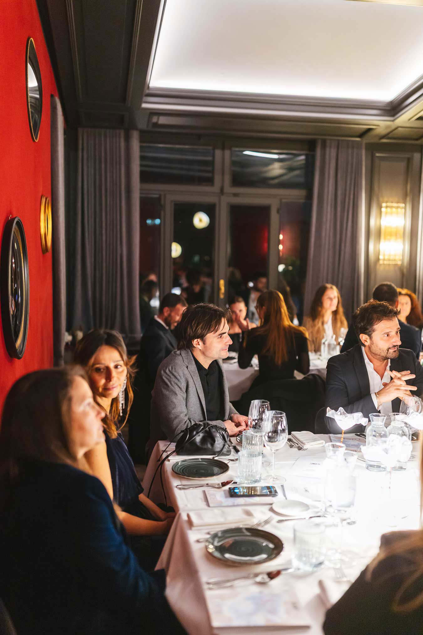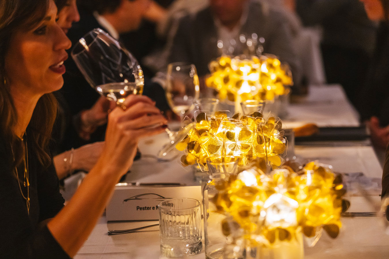 The evening opened with Porsche cocktails, offering a creative and engaging concept: a drink list inspired by different models from the range, with recipes ranging from delicate to aromatic or spicy, enhanced by an acrobatic bartender show that turned mixology into a true performance. This was followed by a dinner curated by Slamp, built as a sensory journey in which each course was paired with a different table lamp from the collection, creating a dialogue between light and flavors that elevated the perception of each dish.